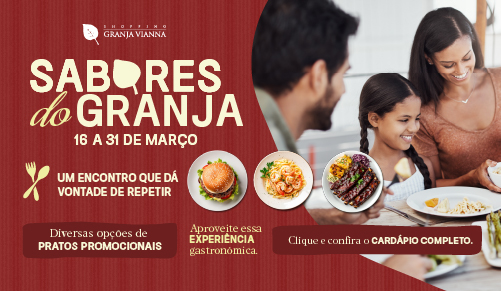 De 16 a 31 de março, o Shopping Granja Vianna recebe mais uma edição do Sabores do Granja, com pratos promocionais irresistíveis que vão conquistar seu paladar.🍴🔥